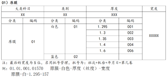 薄膜行業(yè)物料編碼整理