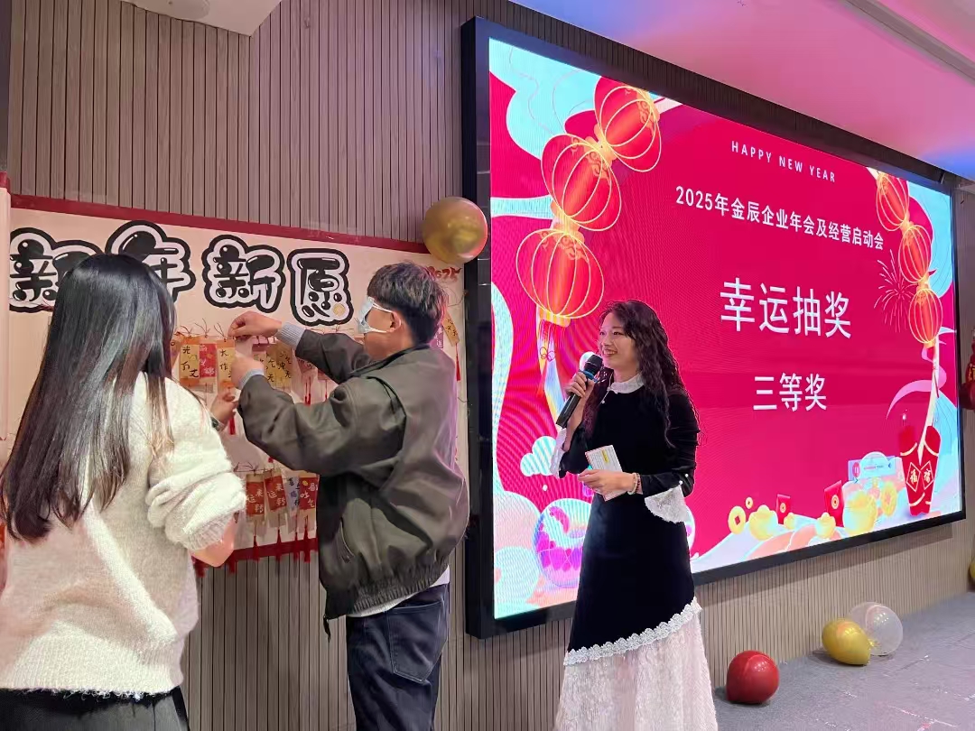 除了精彩的節(jié)目,年會還設置了激動人心的抽獎環(huán)節(jié),抽獎形式充滿新穎和趣味,隨著一個個獎項的公布,現場氣氛被一次次推向高潮,中獎的員工們歡呼雀躍,未中獎的員工也同樣沉浸在歡樂的氛圍中。當獲獎者們走上領獎臺,接過心愿卡和獎金時,臺下的員工們也紛紛以熱烈的掌聲向他們表示祝賀。