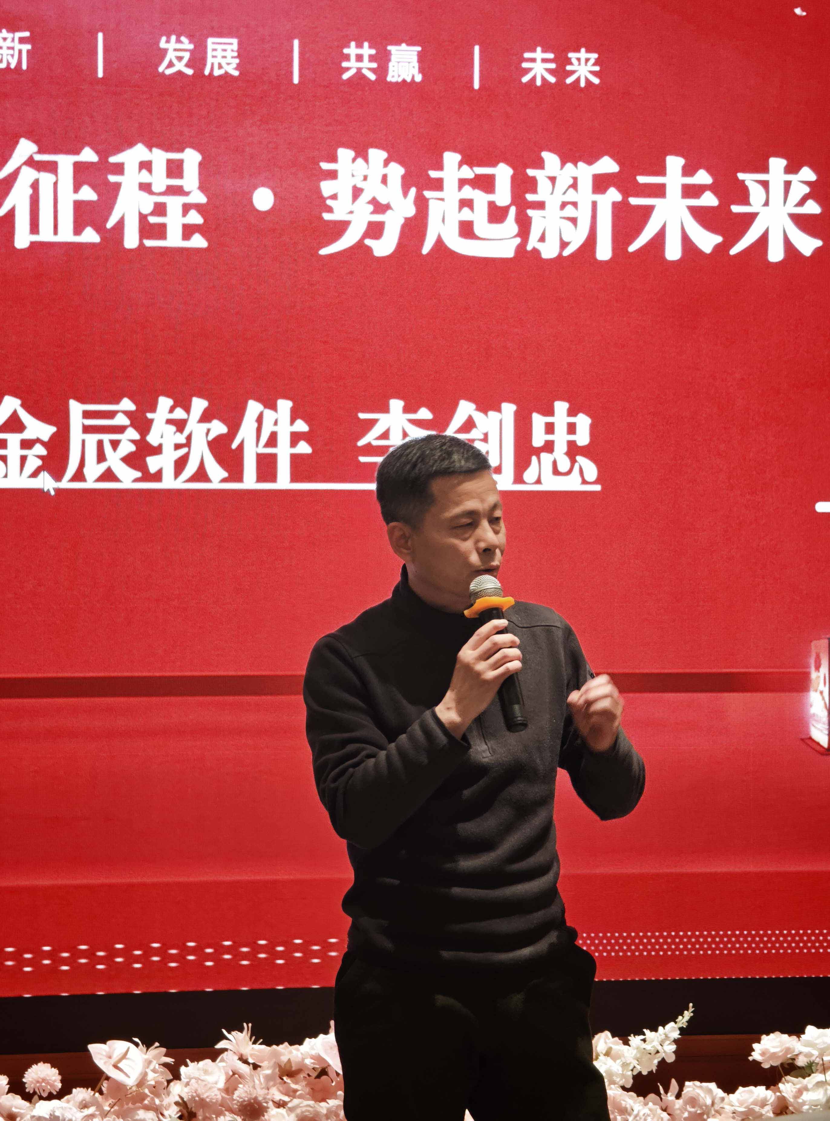 視頻過(guò)后,倪總登臺(tái)為年會(huì)致辭,既對(duì)公司 2025 年的發(fā)展成果進(jìn)行了全面總結(jié),肯定了全體員工的辛勤付出與不懈堅(jiān)守,也為 2026 年的發(fā)展擘畫(huà)了美好藍(lán)圖,提出了新的期許與要求。隨后,李劍忠李總發(fā)表致辭,樸實(shí)的話(huà)語(yǔ)中滿(mǎn)是對(duì)團(tuán)隊(duì)的認(rèn)可與關(guān)懷,為全體金辰人新一年的奮斗指明了方向。兩位領(lǐng)導(dǎo)的致辭振奮人心、催人奮進(jìn),讓現(xiàn)場(chǎng)員工深受鼓舞,陣陣熱烈的掌聲在會(huì)場(chǎng)久久回蕩。